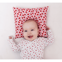 La almohada del bebé con el hueco proporciona una posición cómoda en la posición supina. Evita el aplastamiento de la cabeza, que puede ser causado por la cabeza que descansa en el colchón. EasyDorm está cosido de una tela de cubierta (100% algodón) y se puede lavar a máquina.