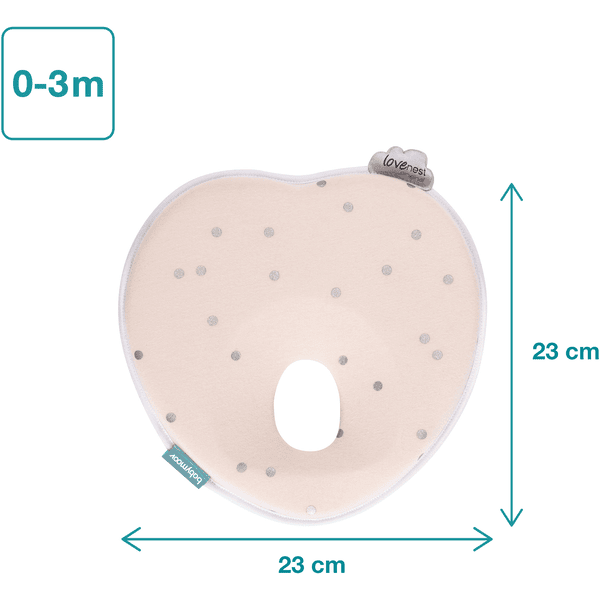La almohada para bebés Lovenest se puede usar desde el nacimiento en cualquier portero, cama o cochecito y se puede lavar a máquina a 30°.