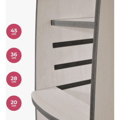 - Altura regulable: 20 , 28, 36 y 45 cm sobre el suelo