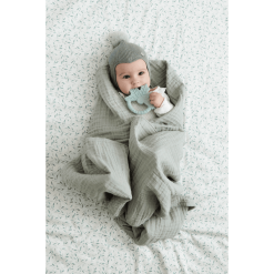 - Manta suave y transpirable hecha de algodón orgánico de 4 capas.