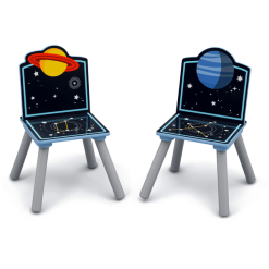 La robusta construcción y la calidad artesanal de este conjunto lo convierten en el lugar perfecto para hacer los deberes, proyectos de arte o para cenar. Despierta tu sentido de la maravilla y viaja al cosmos con el juego de mesa y silla para niños Space Adventure s con Storage de Delta Child ren ¡!
