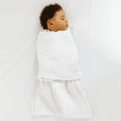 Nota de seguridad: Para reducir el riesgo de que la tela cubra accidentalmente la boca o la nariz del bebé, el saco de oveja swaddle debe ser del tamaño correcto, ajustarse bien, envolver el torso del bebé y estar bien abrochado. Nunca pongas ningún objeto en la cuna con tu bebé. No hay almohadas, cojines, juguetes ni mantas sueltas.