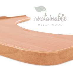 Por supuesto, la mesa de comedor también puede utilizarse junto con el arnés de 5 puntos, la correa de la entrepierna y nuestra amplia gama de cojines para tronas. Además, es fácil de limpiar y basta con pasar un paño después de comer.