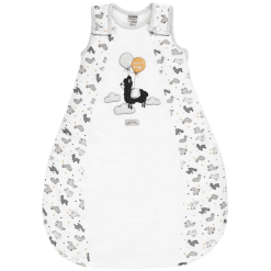 Precioso saco de dormir con una bonita aplicación de llama. Hecho de algodón suave y mimoso. Con los cierres a presión en el hombro y la cremallera lateral, el saco de dormir puede abrirse completamente.