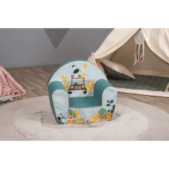 No sólo el asiento, sino también los reposabrazos son de espuma suave y están cubiertos de algodón. Gracias a su gran colorido y a su vistoso estampado, es el centro de atención absoluto en la habitación de los niños. Su hijo se sentirá seguro y protegido en este sillón, que invita a los más pequeños a relajarse y dormitar. Gracias a la espuma, el asiento es excepcionalmente ligero y a la vez estable. Así, incluso los más pequeños pueden empujar el sillón sin esfuerzo de un lado a otro de la habitación.