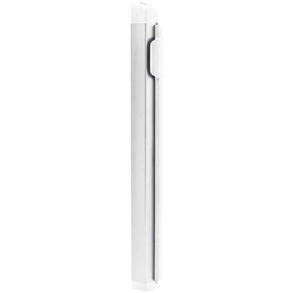 puede montarse en aberturas de puertas o escaleras hasta un ancho de 120 cm. Funciona como una persiana enrollable y solo requiere un espacio mínimo. Se puede extender con una mano y enrollar con la misma facilidad. Un dispositivo de seguridad infantil incorporado retrasa la apertura y el cierre en 15 segundos. Alternativamente, es posible bloquearla con la mano.