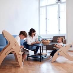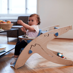 balancín, una pequeña mesa infantil con sillón, una pequeña escalera, un