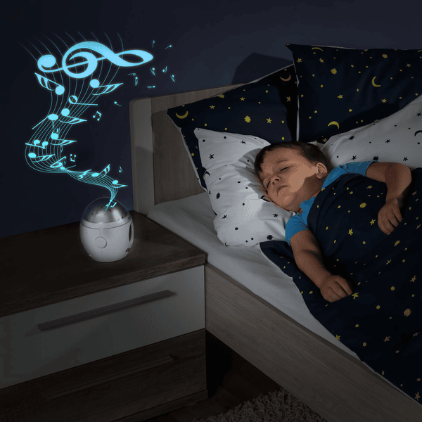 Además de las estrellas brillantes, el My Magic Star light está equipado con una función musical. Diez nanas clásicas y cinco sonidos relajantes de la naturaleza prometen una acogedora siesta. Gracias a un control de volumen infinitamente variable, puedes ajustar las relajantes melodÃas para que se adapten a las necesidades y al entorno de tu hijo.
