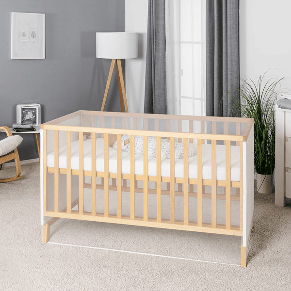 - Ajuste universal para todas las cunas de hasta 70 x 140 cm sin capota o cunas de viaje de 60 x 120 cm