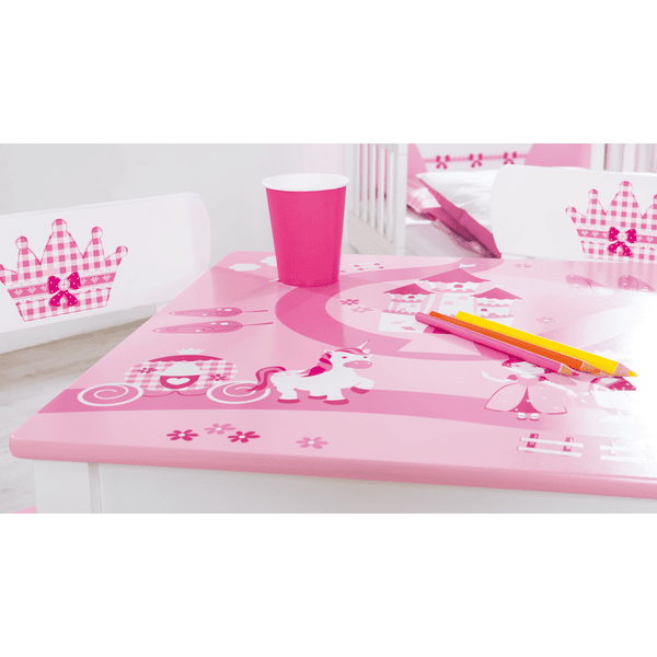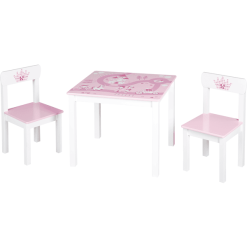 Consta de una forms hermosa mesa para niños y dos sillas a juego. Sus hijos
