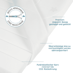 - El n煤cleo del colch贸n, con m煤ltiples ranuras y perforaciones, reduce la respiraci贸n de CO2