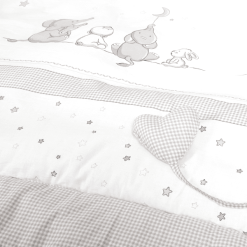 La manta de arrastre mantiene el suelo frÃo gracias a su suave relleno de vellón. Todos los materiales utilizados para las mantas de roba juego y de arrastre se someten a pruebas de sustancias nocivas, certificadas y sometidas a pruebas periódicas.