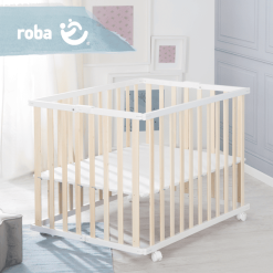 em decoración. Cuando se instala, el corralito cuadrangular de roba ofrece un