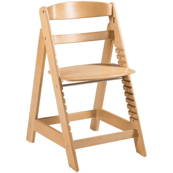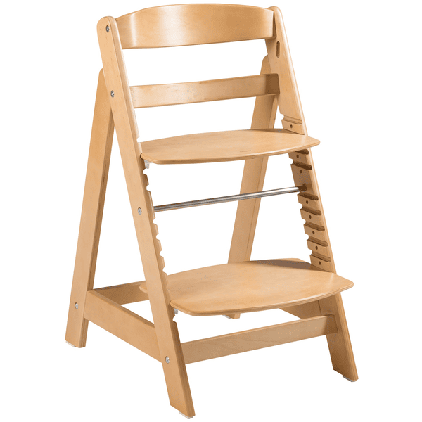 Una trona segura y flexible que crece con el niño. El asiento y el reposapiés de la trona se pueden ajustar en altura y profundidad con un «clic» para un ajuste ergonómico correcto del asiento y se adaptan a la fase de crecimiento respectiva de tu pequeño gracias al innovador sistema de clic. La trona ofrece un soporte óptimo para el respaldo y una posición de asiento correcta independientemente del tamaño del niño. La trona está hecha de madera, es robusta y tiene una gran estabilidad gracias a su construcción especial. La barra de seguridad y el sistema de cinturón extraíbles ofrecen protección adicional para los niños pequeños. La trona es perfecta para diferentes alturas de mesa y se puede ajustar de forma flexible desde la mesa de comedor hasta el escritorio de los niños. Recomendada como trona para niños pequeños que pueden sentarse sin ayuda exterior (a partir de aprox. 6 meses), y puede soportar hasta aprox. 50 kg. El montaje sencillo de la trona dura aprox. 30 minutos. El asiento y el reposapiés se pueden introducir en los respectivas ranuras con un solo movimiento. La trona se puede limpiar con un paño húmedo. Todos los materiales utilizados están certificados y se prueban regularmente. La laca utilizada es inocua para alimentos y no daña la piel.