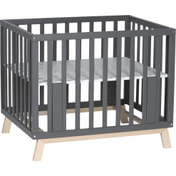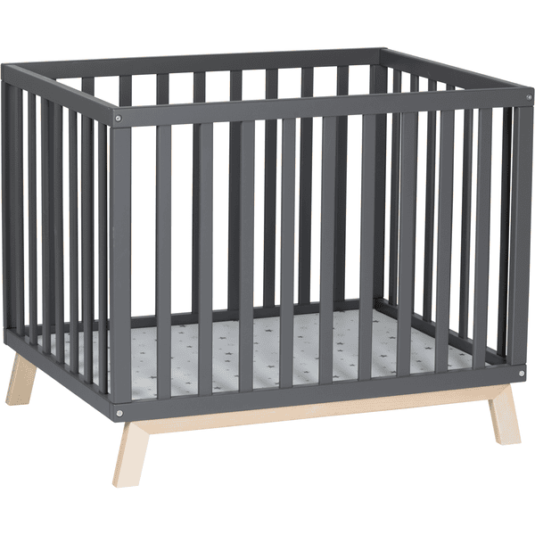El parque infantil Holly está hecho de madera de pino maciza y es por lo tanto especialmente estable. El acolchado con parte inferior de lámina de PVC que se puede limpiar y puede ajustarse en altura de dos formas.