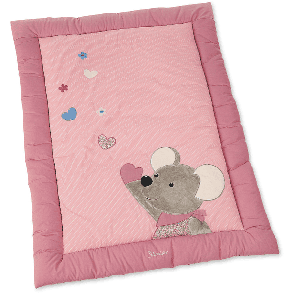 Suave manta de poliéster cotton , terciopelo suave y vellón con motivo de ratón Mabel. El papel chirriante y crujiente estimulará los sentidos de su pequeño tesoro.