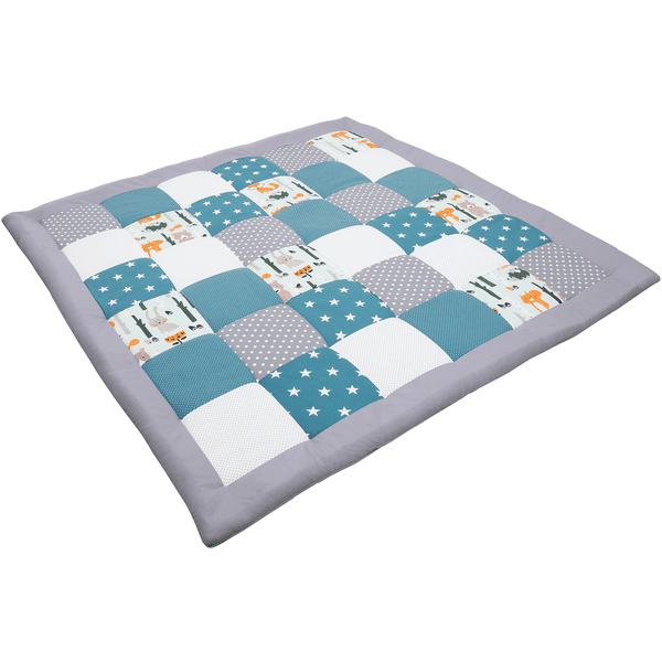 Para la manta de juegos, cuidadosamente fabricada, sólo se utilizaron tejidos de algodón de alta calidad que han sido sometidos a pruebas de detección de sustancias nocivas. Están certificados según Öko Tex Standard 100 y cumplen todos los requisitos de la clase de producto I para niños y bebés.