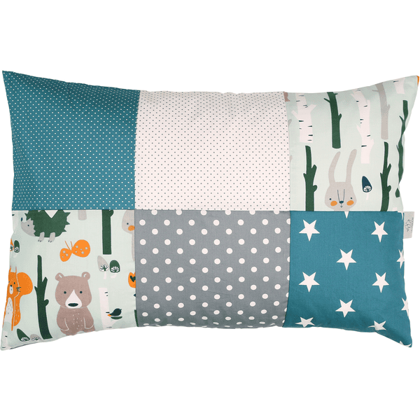 Tanto si se trata de una funda de cojín para niños como de una decoración para habitaciones infantiles: esta funda se adapta a cualquier situación. Con su fondo monocromo y delicadamente punteado, así como el trabajo de alta calidad Patch de la fachada con hermosos motivos, la portada simplemente se ve hermosa para los niños.