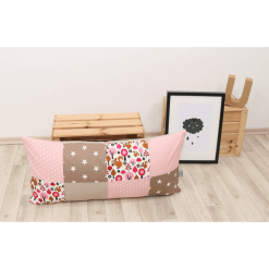 La decoración de alta calidad de las habitaciones infantiles se presenta con un fondo liso y discretamente punteado, así como un frente alegre en un bello Patchwork trabajo.