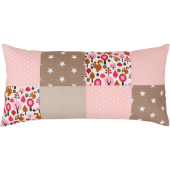 La decoración de alta calidad de las habitaciones infantiles se presenta con un fondo liso y discretamente punteado, así como un frente alegre en un bello Patchwork trabajo.