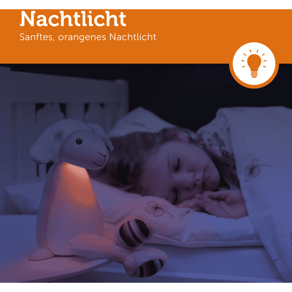 La aleta se alimenta de una batería recargable, que se carga a aden través de un cable micro-USB (incluido). La aleta no se calienta y es inalámbrica, lo que significa que los niños pequeños pueden llevarla fácilmente a la cama. Después de la lectura, la luz se ajusta a la configuración más suave para ayudar a los niños a dormirse. FIN entonces brilla muy suavemente orange . Se ha demostrado que la luz es Orange uno de los mejores colores para dormir porque interfiere menos con el patrón de sueño. Después de 60 minutos, el FIN se apaga solo.
