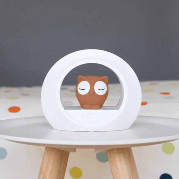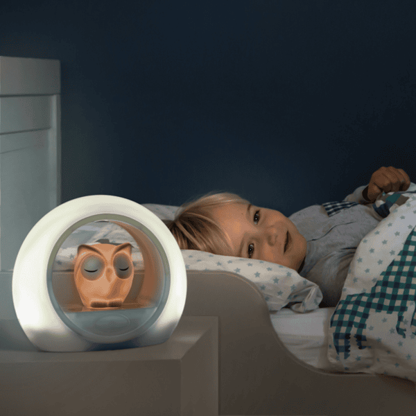 La intensidad de la luz puede regularse para ambos elementos. Ambas luces tienen una función de apagado automático: el niño se duerme con la luz encendida, pero durante el sueño la habitación está a oscuras o sólo muy suavemente iluminada por el brillo del búho.